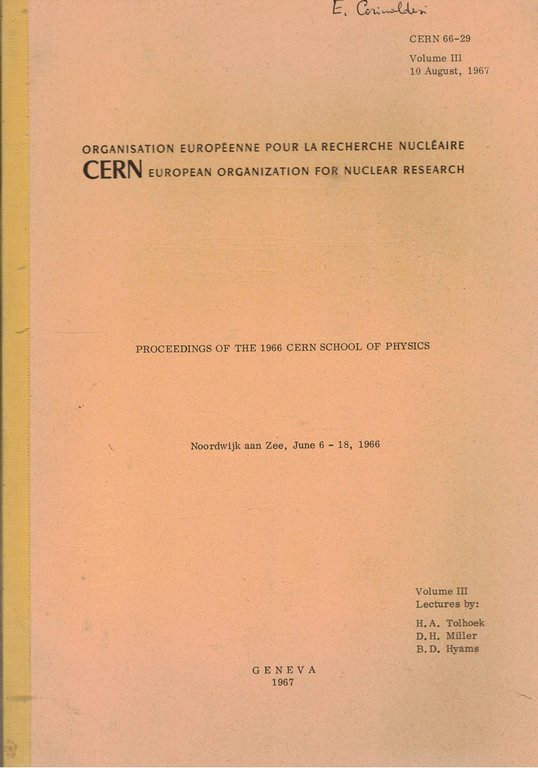 Proceedings of the 1966 cern school of physics. Noordwijk aan Zee 6-18 june 1966.