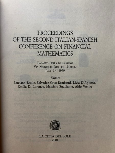 Titolo: Proceedings of the Second Italian-Spanish Conference of financial mathematics. Palazzo Serra di Cassano, Napoli, 1-4 July 1999