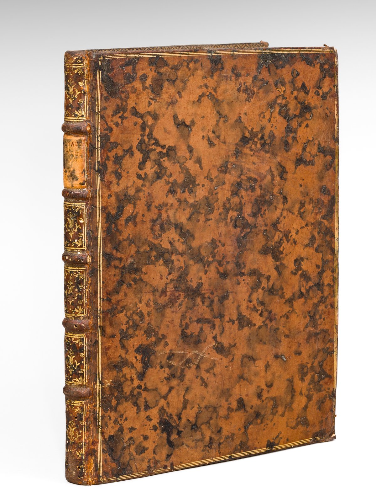 1 vol. in-4 reliure de l'époque pleine basane marbrée, dos à 5 nerfs orné, triple filet doré d'encadrement en plats, coupes et chasses ornées, De l'Imprimerie Royale, Paris, 1762, xxiij-207 pp. avec une planche hors texte (Plan de la Tenue du Sceau dans le grand Sallon du Château de Versailles). Rare exemplaire de cet important ouvrage. Imitant son bisaïeul Louis XIV qui avait tenu les sceaux lui-même après la mort de Séguier jusqu'à la nomination d'Etienne d'Aligre, Louis XV tint les sceaux pendant plus de quatre ans, du 4 mars 1757 au 13 octobre 1761. Dans son article consacré à "L'audience du sceau", Georges Tessier nous apprend qu'un "règlement fut rédigé à cette occasion, qui reproduisait à peu de choses près, celui de 1672, et les procès-verbaux des 107 séances présidées par le roi, soigneusement établis par les quatre huissiers de la Grande chancellerie, furent imprimés par les soins de l'Imprimerie Royale". Il précise que l'introduction placée en tête de ce recueil contient d'utiles "renseignements sur la composition ordinaire de l'audience du sceau et la procédure suivie pour la présentation des lettres". L'ouvrage est illustré d'un très beau bandeau gravé : "Louis XV tenant le Seau en personne pour la première fois, le 4 Mars 1757", par J.J. Pasquier, d'un plan hors texte : "Plan de la Tenue du Sceau dans le grand Sallon du Château de Versailles", détaillant la position très précise de tous les personnages (dont "le Scelleur", "Le Chaufe-Cire", le "Cirier", le "Porte Cofre", etc.) et objets ("Cofre où l'on met les Expéditions du Sceau", "Manne dans laquelle on met les Expéditions pour le compte du Roi", etc.). L'introduction nous précise par exemple que "les Ciriers sont des Officiers à la nomination des Grands-Audienciers de France, qui ont droit d'entrer au Sceau ; ils servent par semestre ; leurs fonctions sont de fournir la cire pour le Sceau, & de la faire préparer dans une pièce voisine de la salle où se tient le Sceau". Etat très satisfaisant (reliure un peu frottée avec petites usures en dos et coupes, petites piq. de vers en dos et au mors en garde, rares petites mouill. marginales, bon état par ailleurs). Cf Tessier, L'audience du sceau, Bib. de l'Ecole des Chartes, pp. 51-95