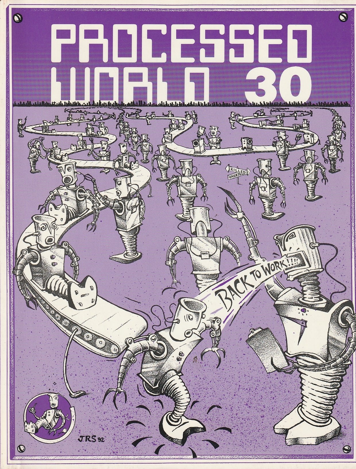 Brossura editoriale, prima di copertina di JR Swanson, testo in inglese su tre colonne, numerose illustrazioni in b/n con fotografie, fotomontaggi, disegni e fumetti. Rivista underground fondata nel 1981 da Chris Carlsson, Caitlin Manning e Adam Cornford, provocatoriamente dedicata ai "processori" della società contemporanea, quali impiegati e segretarie ("for office workers who are dissatisfied with their lot in life and are seeking something better" – dal No. 1, Aprile 1981). In ottimo stato.