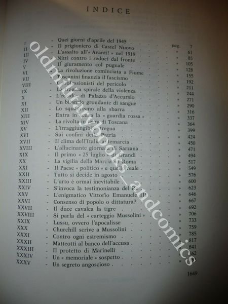 DESCRIZIONE: C.E.N. CENTRO EDITORIALE NAZIONALE Roma 1968, br. ed. in similpelle tit. in oro, pp. 1650 complessive con molte tavole a piena pagina n.t. tratte da fotografie inedite originali in 4°. Opera stravagante solo in apparenza che, partendo dall'ipotesi che Mussolini riuscì a sottrarsi alla cattura da parte dei partigiani, cadde prigioniero degli Alleati dopo l'estrema battaglia combattuta nella ridotta della Valtellina e venne quindi sottoposto ad un processo formalmente "regolare". Nonostante la verità storica fu diversa quest'opera consente di esaminare nello stile dibattimentale giudiziario, senza mai indulgere all'odio o alla pietà, la figura e l'opera dell'Italiano al quale invece fu negato qualunque diritto alla difesa. CONDIZIONI: Buone, i voll. presentano dei leggeri danni/distacchi alle copertine. PESO / WEIGHT: 4500 gr. without package