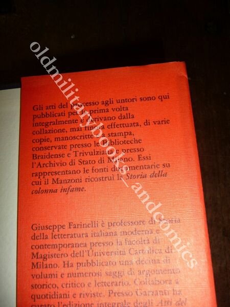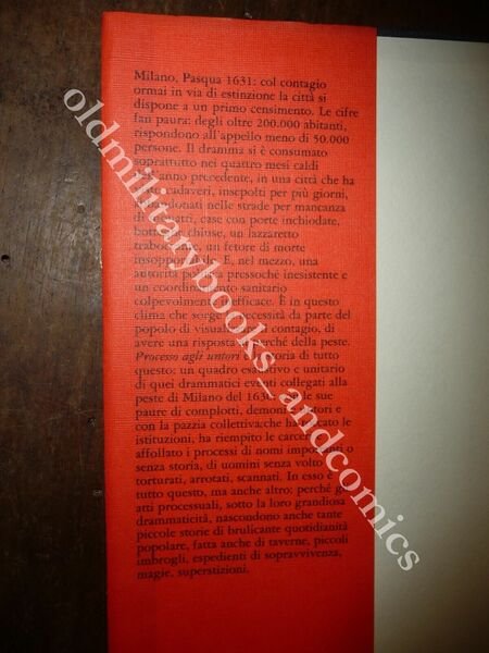 DESCRIZIONE: Garzanti Milano 1988 I^ Ed. br. ed. ca. con sovracc. ill. con alette pp. 597 in 8°. Gli atti del processo agli untori sono qui pubblicati per la prima volta integralmente e derivano dalla collazione, mai finora effettuata, di varie copie manoscritte e a stampa conservate presso le Biblioteche Braidense e Trivulziana e presso l'Archivio di Stato di Milano. Milano, Pasqua 1631: col contagio ormai in via di estinzione la città si dispone a un primo censimento. Le cifre fan paura: degli oltre 200.000 abitanti, rispondono allappello meno di 50.000 persone. Il dramma si è consumato soprattutto nei quattro mesi caldi dellanno predente, in una città che ha visto cadaveri, insepolti per più giorni, abbandonati nelle strade per mancanza di monatti, case con porte inchiodate, botteghe chiuse, un lazzaretto traboccante, un fetore di more insopportabile. CONDIZIONI: Ottime/Perfette. PESO / WEIGHT: 800 gr. without package