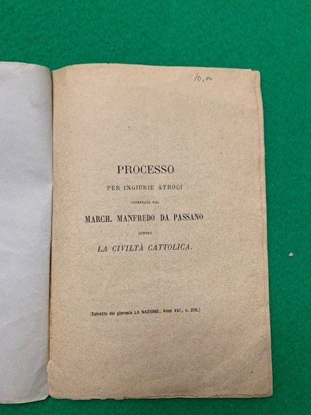 Processo per ingiurie atroci intentato dal march. Manfredo da Passano contro la civiltà cattolica,