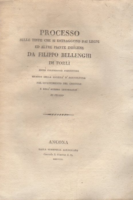 Processo sulle tinte che si estraggono dai legni ed altre piante indigene da Filippo Bellenghi di Forlì.