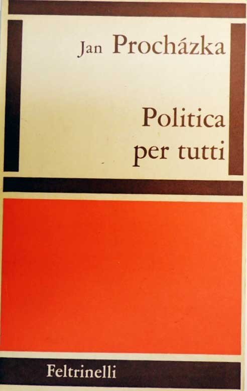 Jan Procházka, Politica per tutti, Feltrinelli Editore, Milano 1969, prima ed., pp. 286, cm 23, br. ed. Collana I fatti e le idee. Saggi Biografie, n. 187. Titolo dell’opera originale: Politika pro každèho. Traduzione dal cecoslovacco di Bruno Meriggi. Lievi tracce d’uso alla brossura, per il resto ben conservato.