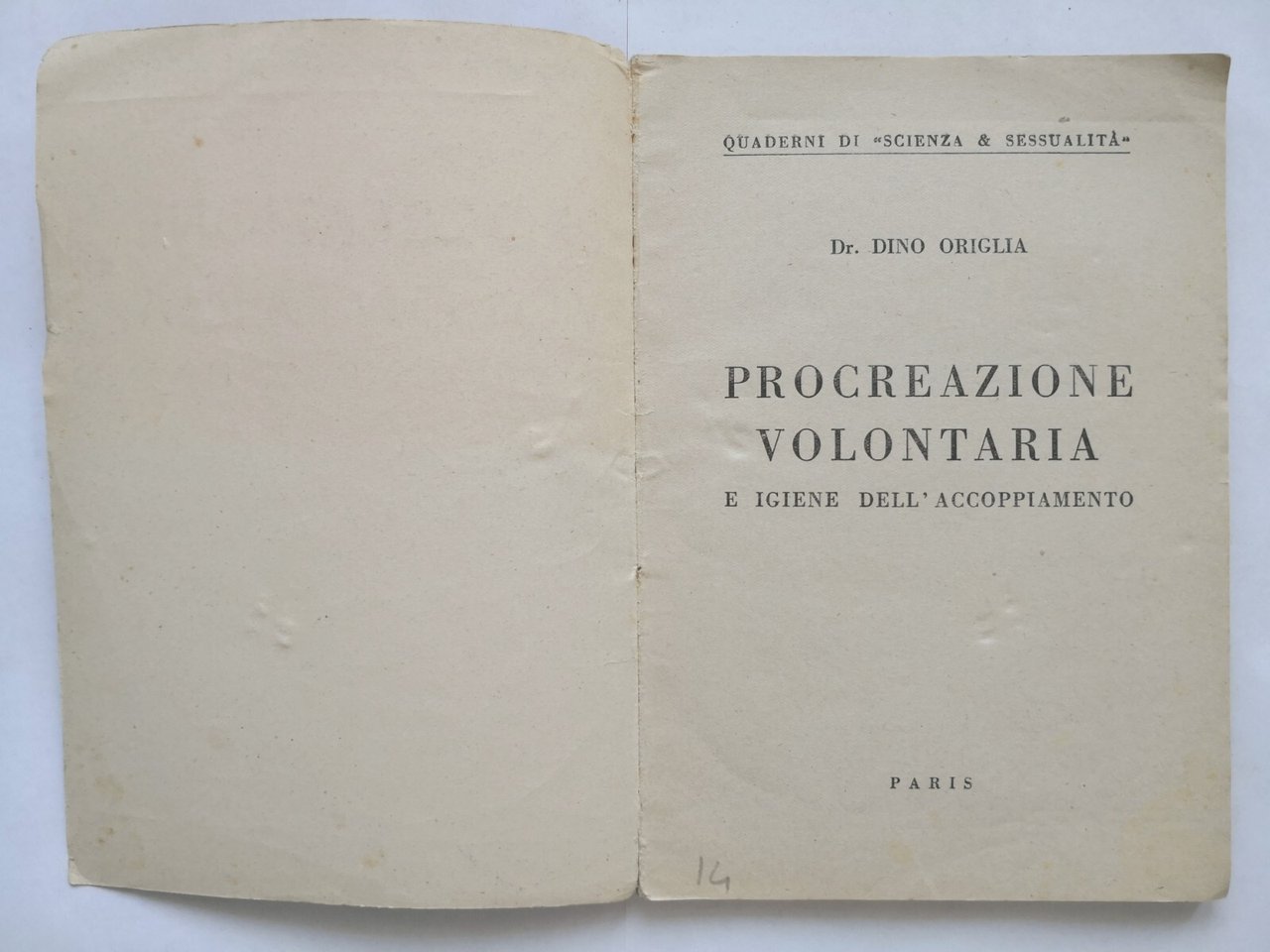 PROCREAZIONE VOLONTARIA E IGIENE DELL'ACCOPPIAMENTO di Dino Origlia 1951 Libro
