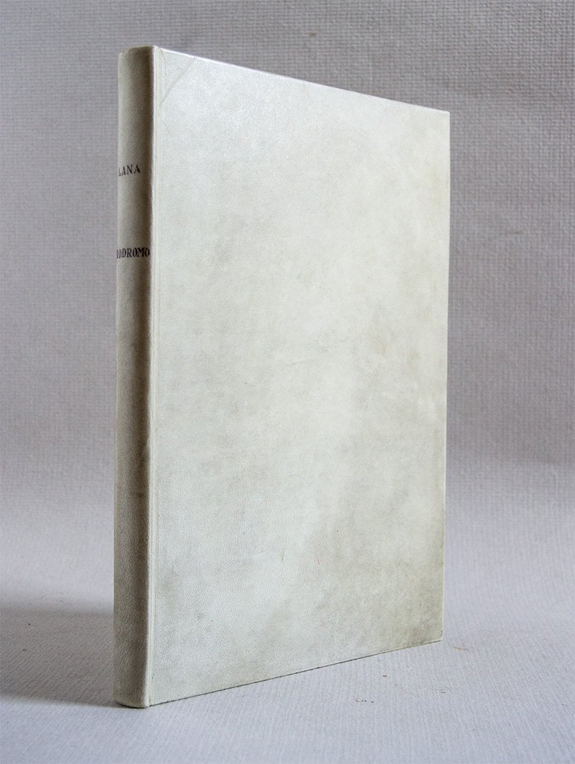 - PRIMA EDIZIONE. Pergamena moderna. (8), 252 pp., 20 tavv. incise in rame a piena pag. f.t. Piccolo restauro all'ultima tav. senza toccare la parte incisa. Lana (1631-1687), gesuita e collega di Kircher, fu professore di fisica a Brescia. In questa opera fornisce un'ampia descrizione di invenzioni nei più svariati campi delle arti e delle scienze. Tra le altre troviamo: microscopi, igrometri, orologi, pompe idrauliche, un nuovo tipo di termometro, un metodo di scrittura cifrata, un sistema per insegnare a scrivere ai ciechi, un metodo per produrre colori, etc. Della massima importanza, la famosa descrizione di una macchina volante che Dibner definisce: "the earliest presentation of the concept of flight based on aerostatic principles." Riccardi II-13; Boffito pp. 233-236; Olschki Choix 19593; Cat. Libri 1861 n. 4069; Wheeler Gift 166; Caproni-Bertarelli p. 96; H.F. Norman Library n. 1272; Gamble, Hist. of Aeronautics n. 1134; Davy, Hist. of Flight pp. 22/23.
