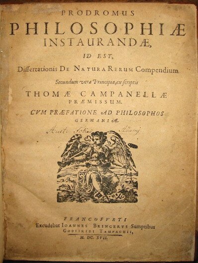 Prodromus philosophiae instaurandae, id est, Dissertationis De Natura Rerum compendium secundum vera Principia, ex scriptis Thomae Campanellae praemissum. Cum praefatione ad philosophos Germaniae