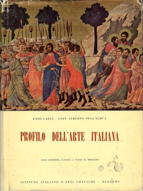 2. ed. 490 p., 16 c. di tav. : ill. ; 26 x 20 cm. Un classico testo di storia dell'arte italiana dalle origini al 14. secolo scritto da due maestri della storia dell'arte, Enzo Carli (1910-1999) e Gian Alberto Dell'Acqua (1909-2004). Legatura editoriale, coperta in cartoncino rigido telato di colore blu, titolo impresso in oro al piatto e al dorso. Sovraccoperta illustrata a colori, plastificata opaca, con alette. La sovraccoperta mostra qualche segno del tempo, i profili hanno qualche strappo, coperta e interno in ottimo stato. Pagine interne con numerose illustrazioni in b/n e a colori (16 tav. fuori testo). . Codice libreria 2419.