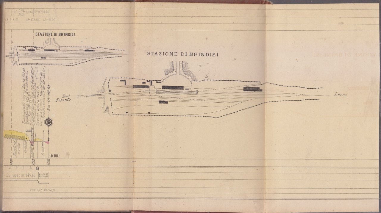 PROFILO DELLA LINEA TARANTO BRINDISI febbraio 1888 strade ferrate mediterraneo