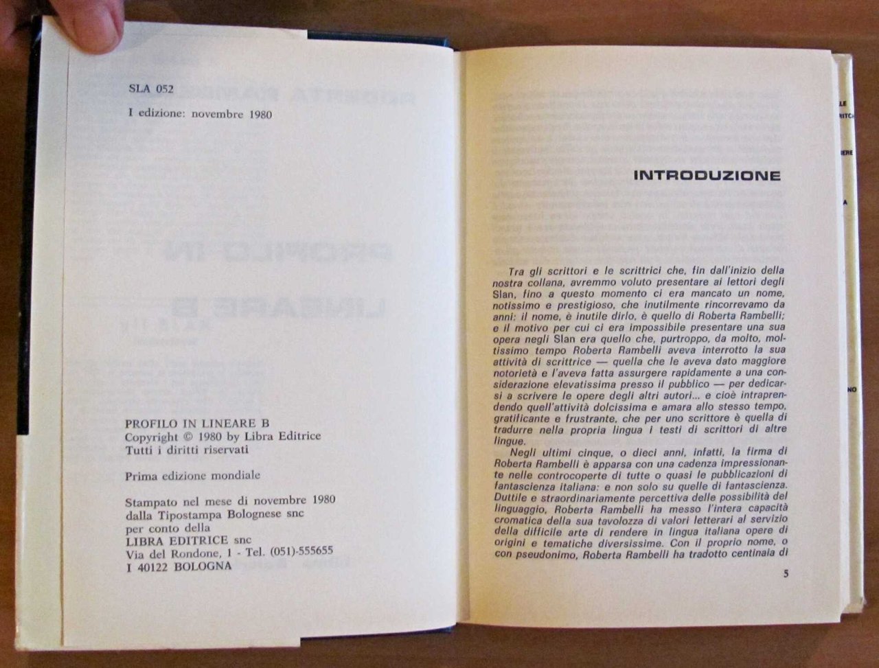 Collana Gli SLAN N.52. Editrice Libra - Bologna, I edizione 1980. Similpelle editoriale, con titoli in oro al piatto e al dorso, con sovraccoperta originale. Piccolo timbro di un Pokémon al risguardo. 14x20,5; pp.323. Ottimo stato. , Ottimo (Fine)