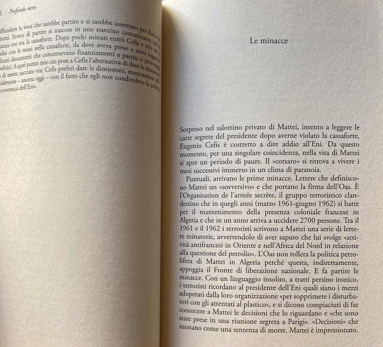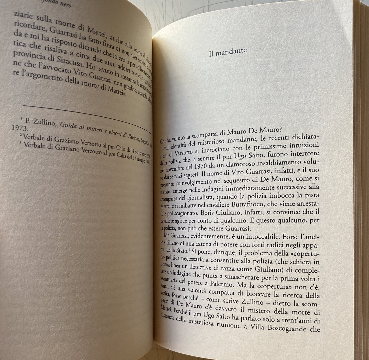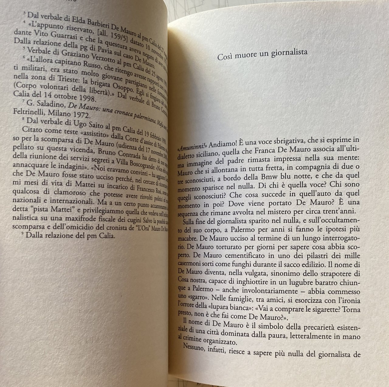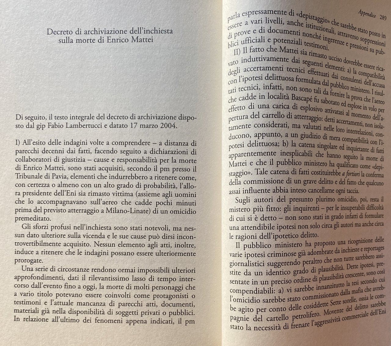 Soggetti: Reportage, Inchieste giornalistiche, Misteri d'Italia Stragismo, Stragi, Strategia della tensione, Politica, Attualità, Giornalismo, Documenti segreti, Segreto di Stato, Sicurezza, Omicidi eccellenti, Anni Settanta Morte Enrico Mattei Eni Compagnie petrolifere internazionali Pierpaolo Pasolini Petrolio Denuncia Destra Corriere della Sera Verità Uccisione Storia contemporanea Eversione Eugenio Cefis Fanfani Servizi segreti Logge massoniche Massoneria P2 Sistema Controllo Informazione Corruzione Partiti politici Rapporti Potere economico Classe dirigente Carte Processi Vincenzo Calia Atti Palermo Testimonianze Ricerca documentale Prima Repubblica Libri fuori catalogo Saggistica Attentati Terrorismo Libro nero Aereo Bascapè Pavia 1962 Corsaro Sette Sorelle Viaggio Sicilia Rivoluzione Autonomia Indipendenza energetica Incidente Complotti Complicità Istituzioni Depistaggio Trame oscure Nemici Indagini Magistratura Sentenza L'Ora Graziano Verzotto Relazioni internazionali Mafia Sisde Idroscalo Banda della Magliana Boris Giuliano Borsellino Buttafuoco Carabinieri Caso Collaboratore D'Angelo Anic Fascisti Gagliano Gela Golpe Graziano Verzotto Guarrasi Italo Johnny lo Zingaro Avvocato Macchina Mandanti Massacro Mistero Montedison Morane Saulnier Nisticò Pestaggio Petrolifero Pilota Pino la Rana Pista Politica Polizia Presidente Raffaele Girotti Ricostruzione Romanzo Sabotaggio Scomparsa Sequestro Sergio Citti Snam Società Stefano Bontade Steimetz Telefonata Anni di piombo Multinazionali Pino Arlacchi Io so Criminologia Delitti eccellenti Agenda Quaderni Appunti Lampi Sinistra Monti Bombe Italo Ormanni Guido Calvi Marazzitta Enrico Cuccia Mediobanca Finanza Buscetta Verzotto Zullino Scoop Oriana Fallaci Licio Gelli Interviste Articoli Stampa Editoria Fonti Greta Paulas Rino Pachetti Mario Ronchi Sam Waagenaar Rosangela William McHale Irnerio Bertuzzi Cazzaniga Gritti Esso Gualtiero Nicotra Buttafuoco Franco Rosi Vito Guarrasi Angelo Fornara Mastini Rana Luciano Garofano Agguato Premeditazione Nino Salvo Di Bella Marcello Boldrini Briatico Bruno Contrada Diana De Martino Antonio Ingroia Carlo Alberto Dalla Chiesa Vito Miceli Sismi Ugo Saito Verbali Occultamento Prove Nisticò Fronte di liberazione nazionale Algeria Anticomunismo Guerra fredda Nomi Responsabili Roberta Torre Journalistic investigations Mysteries of Italy Massacres Strategy of tension Politics Current affairs Journalism Documents State Security Excellent murders 1970s Death International oil companies Right-wing denunciation Truth Killing Contemporary history Subversion Secret services Masonic Lodges Freemasonry System Control Information Corruption Political parties Relationships Economic power Ruling class Papers Trials Acts Testimonials Documentary research First Republic Books out of print Non-fiction Attacks Terrorism Black book Private plane Seven Sisters Journey to Sicily Revolution Autonomy Energy independence Accident Conspiracies Complicity Institutions Misdirection Dark plots Enemies Investigations Judiciary Judgment International relations Case Collaborator Fascists Coup Lawyer Machine Principals Massacre Mystery Beating Pilot Track Politics Police President Reconstruction Novel Sabotage Disappearance Kidnapping Society Phone call Years of lead Multinationals I know Criminology Excellent crimes Notebooks Notes Lightning Left Bombs Finance Interviews Articles Press Publishing Sources Ambush Premeditation Minutes Concealment Evidence National Liberation Front Anti-communism Cold War Names Responsible
