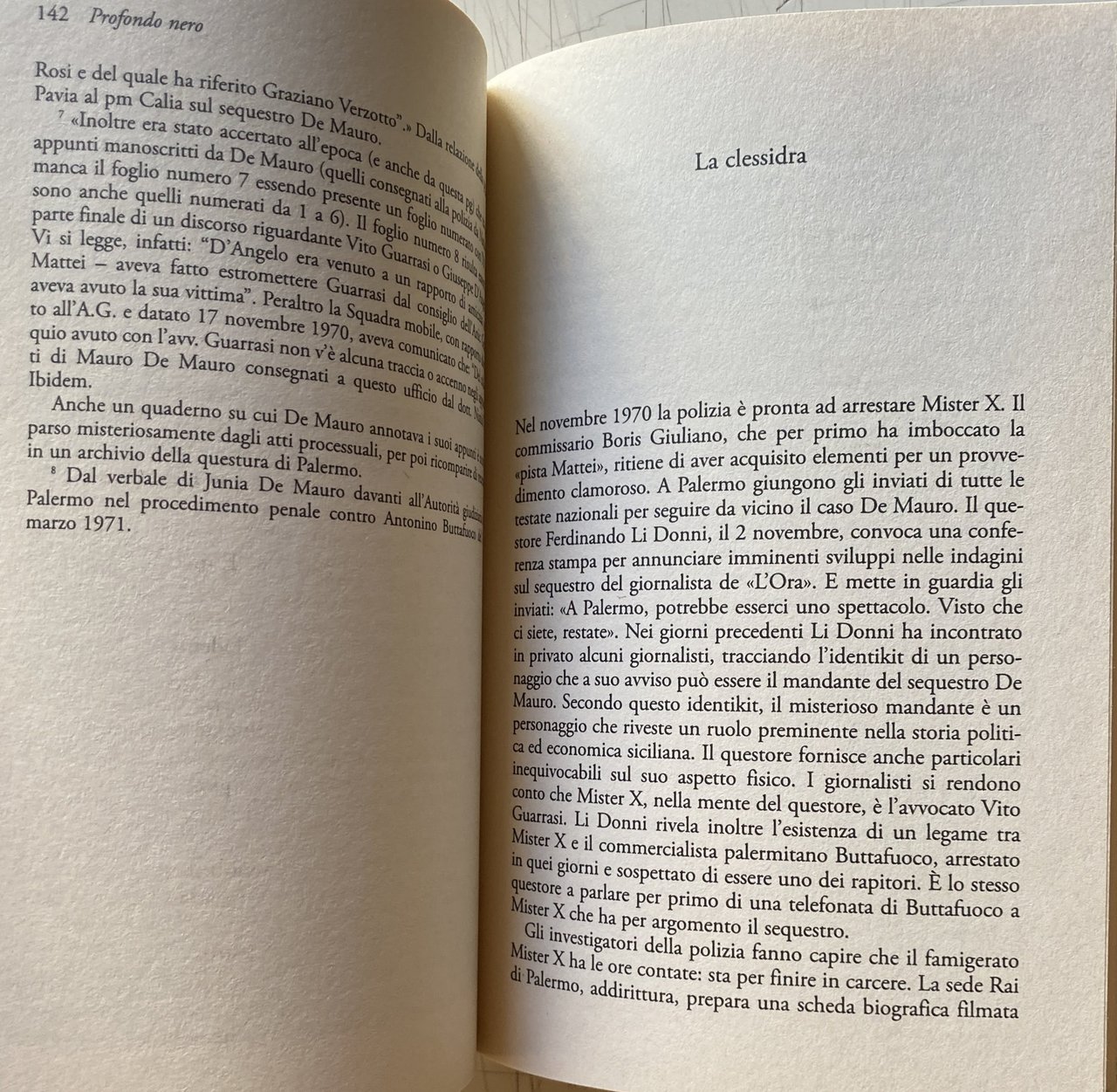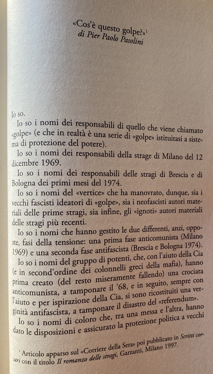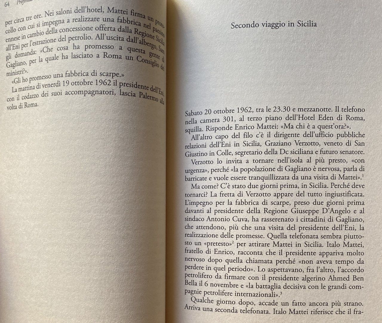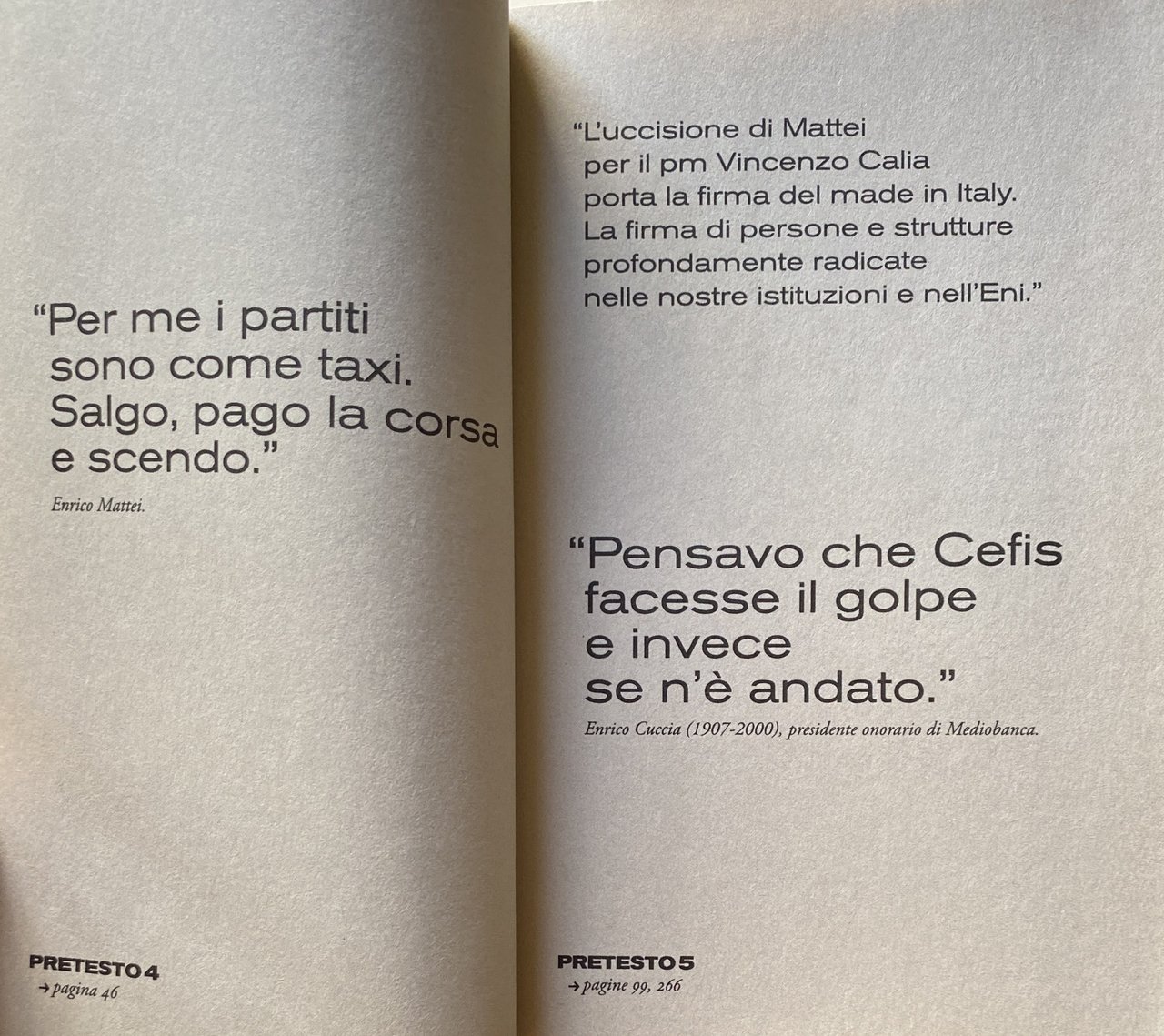 Soggetti: Reportage, Inchieste giornalistiche, Misteri d'Italia Stragismo, Stragi, Strategia della tensione, Politica, Attualità, Giornalismo, Documenti segreti, Segreto di Stato, Sicurezza, Omicidi eccellenti, Anni Settanta Morte Enrico Mattei Eni Compagnie petrolifere internazionali Pierpaolo Pasolini Petrolio Denuncia Destra Corriere della Sera Verità Uccisione Storia contemporanea Eversione Eugenio Cefis Fanfani Servizi segreti Logge massoniche Massoneria P2 Sistema Controllo Informazione Corruzione Partiti politici Rapporti Potere economico Classe dirigente Carte Processi Vincenzo Calia Atti Palermo Testimonianze Ricerca documentale Prima Repubblica Libri fuori catalogo Saggistica Attentati Terrorismo Libro nero Aereo Bascapè Pavia 1962 Corsaro Sette Sorelle Viaggio Sicilia Rivoluzione Autonomia Indipendenza energetica Incidente Complotti Complicità Istituzioni Depistaggio Trame oscure Nemici Indagini Magistratura Sentenza L'Ora Graziano Verzotto Relazioni internazionali Mafia Sisde Idroscalo Banda della Magliana Boris Giuliano Borsellino Buttafuoco Carabinieri Caso Collaboratore D'Angelo Anic Fascisti Gagliano Gela Golpe Graziano Verzotto Guarrasi Italo Johnny lo Zingaro Avvocato Macchina Mandanti Massacro Mistero Montedison Morane Saulnier Nisticò Pestaggio Petrolifero Pilota Pino la Rana Pista Politica Polizia Presidente Raffaele Girotti Ricostruzione Romanzo Sabotaggio Scomparsa Sequestro Sergio Citti Snam Società Stefano Bontade Steimetz Telefonata Anni di piombo Multinazionali Pino Arlacchi Io so Criminologia Delitti eccellenti Agenda Quaderni Appunti Lampi Sinistra Monti Bombe Italo Ormanni Guido Calvi Marazzitta Enrico Cuccia Mediobanca Finanza Buscetta Verzotto Zullino Scoop Oriana Fallaci Licio Gelli Interviste Articoli Stampa Editoria Fonti Greta Paulas Rino Pachetti Mario Ronchi Sam Waagenaar Rosangela William McHale Irnerio Bertuzzi Cazzaniga Gritti Esso Gualtiero Nicotra Buttafuoco Franco Rosi Vito Guarrasi Angelo Fornara Mastini Rana Luciano Garofano Agguato Premeditazione Nino Salvo Di Bella Marcello Boldrini Briatico Bruno Contrada Diana De Martino Antonio Ingroia Carlo Alberto Dalla Chiesa Vito Miceli Sismi Ugo Saito Verbali Occultamento Prove Nisticò Fronte di liberazione nazionale Algeria Anticomunismo Guerra fredda Nomi Responsabili Roberta Torre Journalistic investigations Mysteries of Italy Massacres Strategy of tension Politics Current affairs Journalism Documents State Security Excellent murders 1970s Death International oil companies Right-wing denunciation Truth Killing Contemporary history Subversion Secret services Masonic Lodges Freemasonry System Control Information Corruption Political parties Relationships Economic power Ruling class Papers Trials Acts Testimonials Documentary research First Republic Books out of print Non-fiction Attacks Terrorism Black book Private plane Seven Sisters Journey to Sicily Revolution Autonomy Energy independence Accident Conspiracies Complicity Institutions Misdirection Dark plots Enemies Investigations Judiciary Judgment International relations Case Collaborator Fascists Coup Lawyer Machine Principals Massacre Mystery Beating Pilot Track Politics Police President Reconstruction Novel Sabotage Disappearance Kidnapping Society Phone call Years of lead Multinationals I know Criminology Excellent crimes Notebooks Notes Lightning Left Bombs Finance Interviews Articles Press Publishing Sources Ambush Premeditation Minutes Concealment Evidence National Liberation Front Anti-communism Cold War Names Responsible