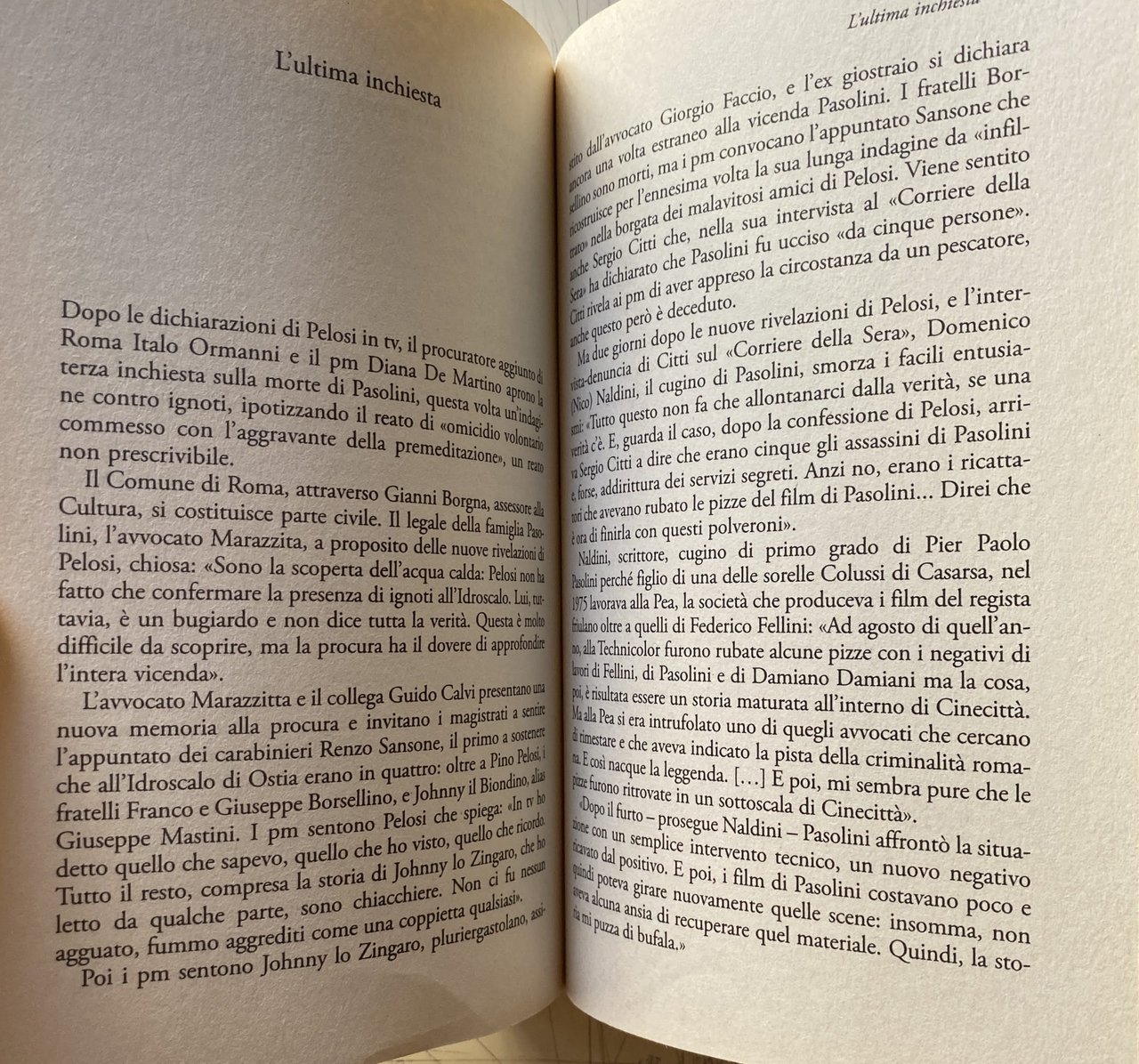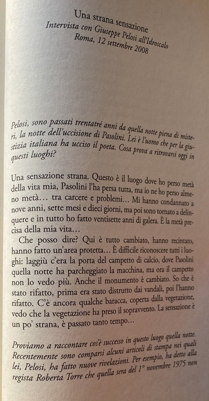 "Se tu uccidi qualcuno in questo modo o sei pazzo o hai una motivazione forte. se gli assassini sono riusciti a sfuggire alla giustizia per trent'anni, pazzi non sono certamente avevano una ragione importante per fare quello che hanno fatto. e nessuno li ha mai toccati." dall'intervista inedita a Giuseppe Pelosi in appendice al libro.