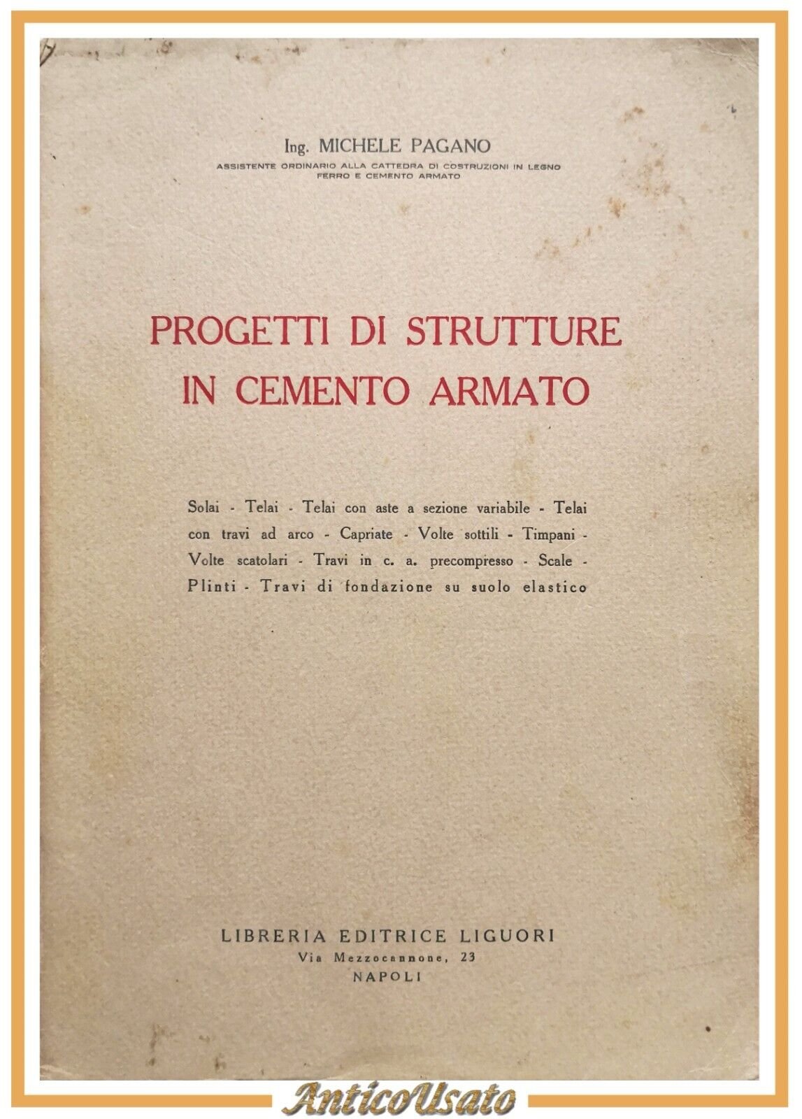 PROGETTI DI STRUTTURE IN CEMENTO ARMATO di Michele Pagano 1953 Liguori Libro