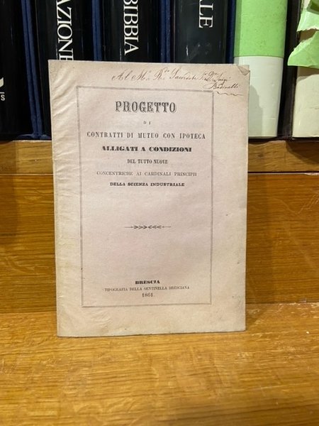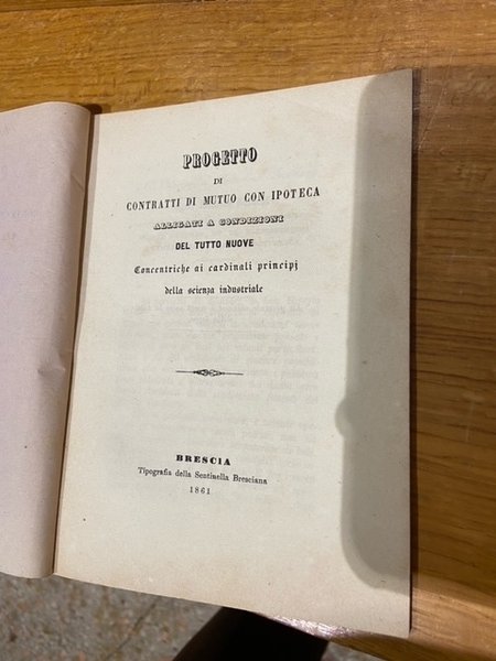 progetto di contratti di mutuo con ipoteca alligati a condizioni del tutto nuove concentriche ai cardinali principi della scienza industriale