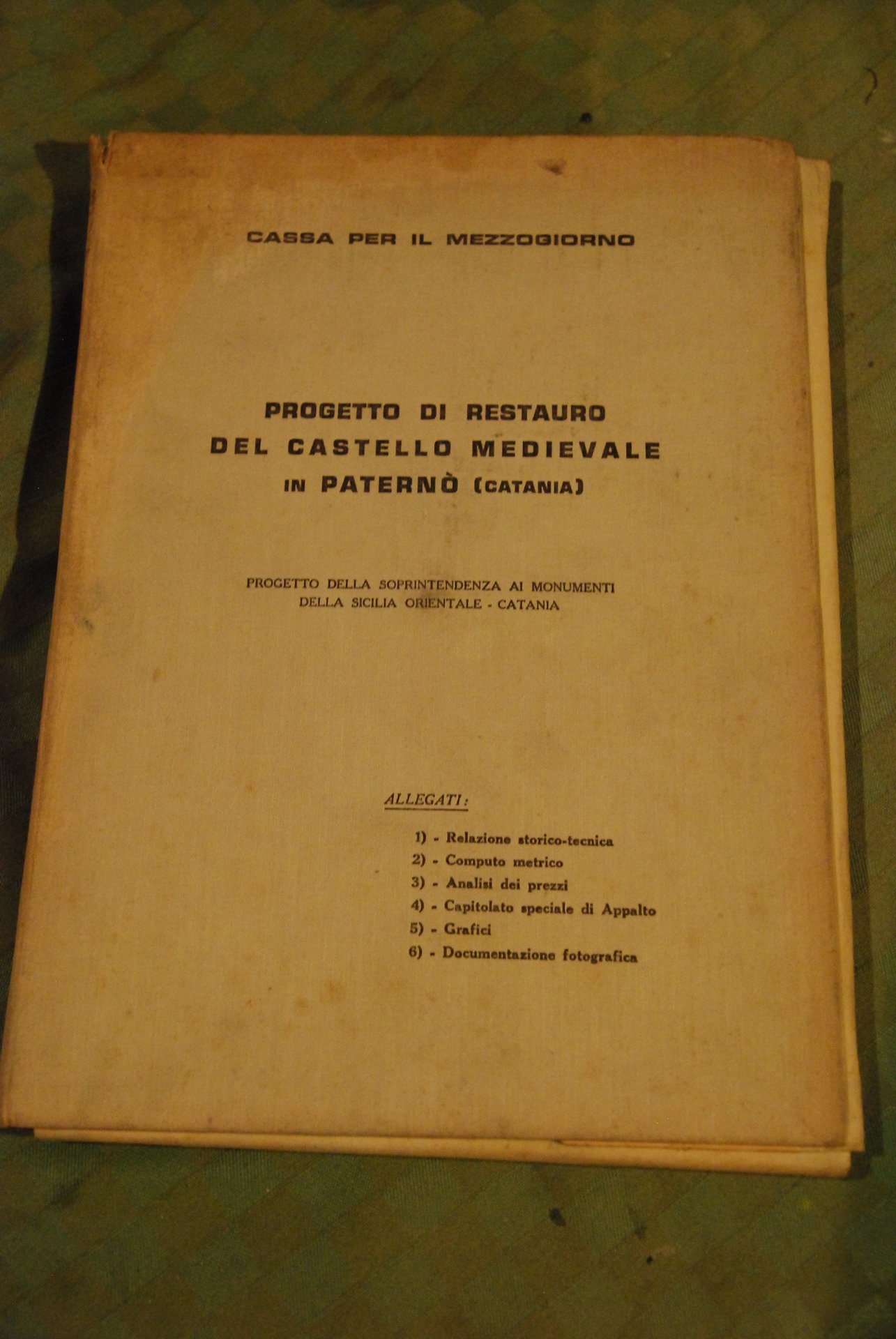 cassa per mezzogiorno progetto di restauro del castello medievale in paterno' paternò rocca normanna catania CON TUTTI GLI ALLEGATI. .
