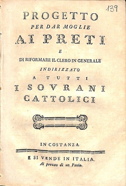 Progetto per dar moglie ai preti e di riformare il clero in generale indirizzato a tutti i sovrani cattolici
