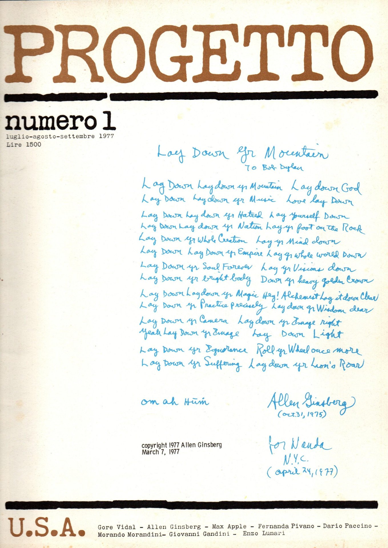 Legatura con punti metallici, impaginazione dello Studio Forma, art director Augusto Concato, con fotografie in B/N e illustrazioni del fumettista spagnolo Enric Siò. Primo numero della rivista interamente dedicato agli Stati Uniti. Contiene un discorso introduttivo di Gore Vidal e la poesia calligrafata a stampa "Guru Om" di Allen Ginsberg tradotta da Fernanda Pivano: segnalata in calce come IV parte di "The fall of America" la poesia non appare più nella raccolta della prima traduzione italiana a firma Pivano (La caduta dell'America, Lo specchio, Mondadori 1981). In ottimo stato.