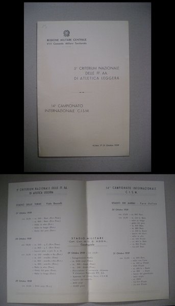 Programma 5°Criterium Nazionale delle FF.AA.di Atletica Leggera.14°Campionato Internazionale C.I.S.M ROMA 1959