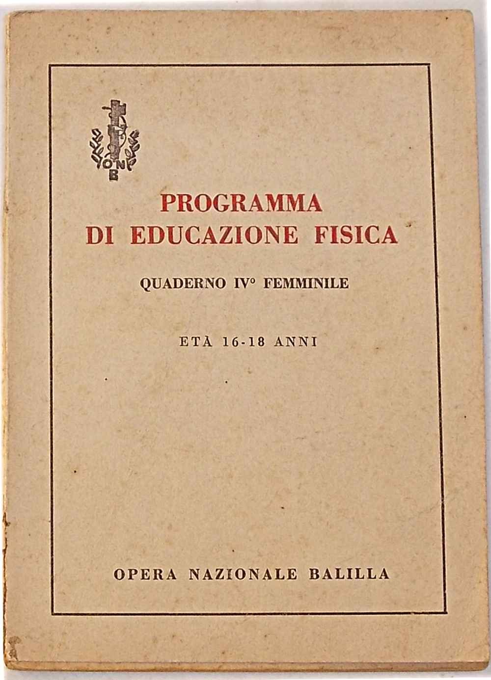 Programma di Educazione Fisica. Quaderno IV° femminile - Età 16-18 anni.