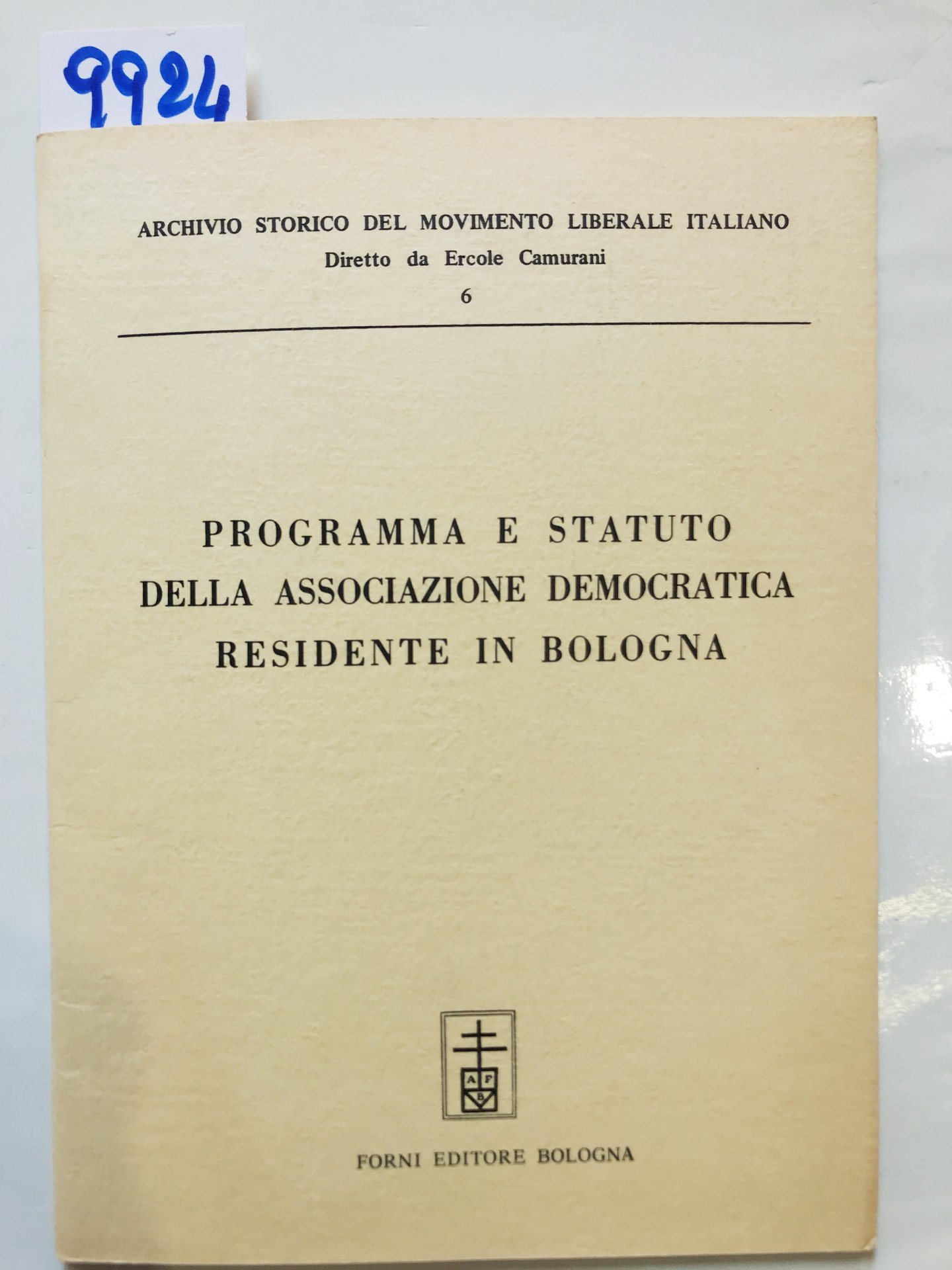 PROGRAMMA E STATUTO DELLA ASSOCIAZIONE DEMOCRATICA RESIDENTE IN BOLOGNA. Archivio Storico del Movimento Liberale Italiano.