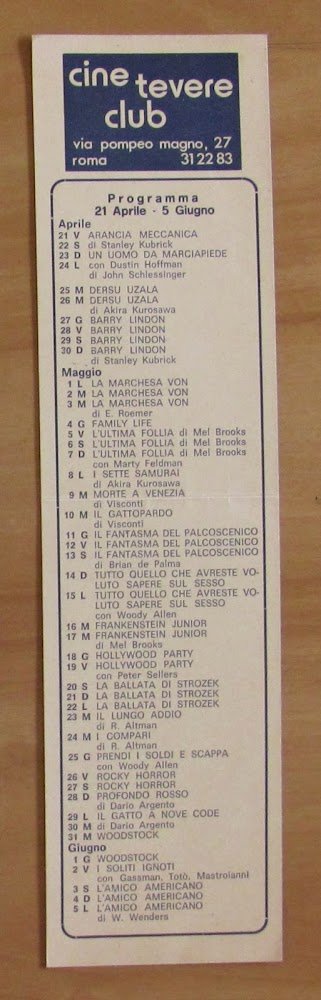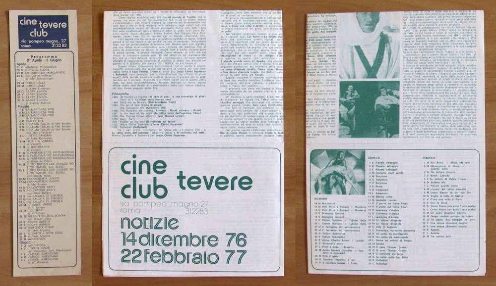 Programma Giornale Notiziario CINE CLUB TEVERE 1976/77 + Programma allegato 1977