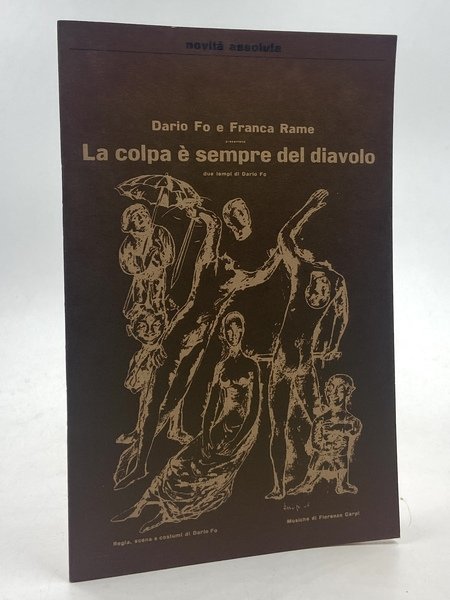 [Programma Teatrale] Dario Fo e Franca Rame presentano La colpa è sempre del diavolo, due tempi di Dario Fo. Regia scene e costumi di Dario Fo. Musiche di Fiorenzo Carpi.