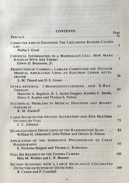 Soggetti/Subjects: Progressi, Ingegneria biomedica, Biomedical Engineering, Biotechnology, Biophysics, Cybernetic Systems, Evolutionary computation, Human factors analysis, Biotechnology, Artificial intelligence, Nuclear Medicine, Science, San Diego Symposium, Bibliographies, Review literature, Conference proceedings, Life Sciences, Medicine-Protective Substances, BUDR, Cancer, Drugs, Man, Organic Bromine Compounds, Radiation Doses, Radiotherapy, Testing, Time, Tumors, Methotrexate, Radiosensitivity, Human neoplasms, Combined effects, X Radiation, Effects, Therapeutic, Uridine, Bromo-2, Deoxy effects, Intra-arterial infusion, Vitamin B Group, Folinic acid, SKIN, 5 Bromodeoxyuridine infusion against; Lectures, Diseas, Neoplastic, Carcinomas, Human epidermoid, Head and neck, Collectibles, Tecniques, Physiological diagnosis, Therapy, Applications, Nucleonics, Statistics, Computer sciences, Environmental eng., Biology, Mathematical modeling, Cardiology, Microdiagnostic, Vitro, X-Ray, RNA, Vivo, Laser sources, Radio isotopes, Patterns, Eletroencephalography, Extreme environmental usage, Hyperbaric, Aneurysms, Life support systems, Internal prosthetics, Artificial heart, Cardiac pacemaker, Oxygen Saturation, Outerpsace Activities, Pneumograph, Chest, Gamma Camera, Mammalian cell, Carbon, Chemical information, Radioisotope Scan, Detectors, Total body, Liver, EEG, Hospitals, Magnets and metallic thrombosis, Carotid artery, Rankine steam, Los Alamos Meson Physics Facility, Homeostasis, Aging, Control Mechanism, Summary, Conclusion, Atomic energy, Blood pumping, Biosciences, Machinery, Progress, Letteratura scientifica, Atti, Ricerca, Seminari, Convegni, Saggistica, Libri Vintage Fuori catalogo, Libri rari, Collezionismo, Bibliografia, Studi medici, Anni Sessanta, Anni Settanta, Rarità, Libri scientifici in inglese, Reviews, Medical offices, Sixties, Seventies, Rarity, Out of print Books, Literature, Biotecnologia, Biofisica, Sistemi cibernetici, Calcolo evolutivo, Analisi dei fattori umani, Biotecnologia, Intelligenza artificiale, Medicina nucleare, Scienza, Simposio di San Diego, Bibliografia, Revisione, Atti, Conferenze, Scienze della vita, Sostanze medico-protettive, Cancro, Farmaci, Uomo, Composti organici, Dosi, Radiazioni, Radioterapia, Tumori, Radiosensibilità, Neoplasie, Effetti combinati, Radiazioni, Raggi X, Effetti, Terapie, Uridina, Bromo-2, Infusione intra-arteriosa, Vitamina B, Acido folico, Bromodeossiuridina, Infusioni, Lezioni, Malattie, Neoplastiche, Carcinomi, Epidermoide umano, Testa e collo, Collezionismo, Tecniche, Diagnosi fisiologica, Terapia, Applicazioni, Nucleonica, Statistica, Informatica, Ingegneria ambientale, Biologia, Modellistica matematica, Cardiologia, Microdiagnostica, Sorgenti laser, Isotopi radio, Pattern, Elettroencefalografia, Iperbarica, Aneurisma, Sistemi, Supporto vitale, Protesi interne, Cuore artificiale, Pacemaker cardiaco, Saturazione, Ossigeno, Pneumografo, Torace, Cellule mammarie, Carbonio, Chimica, Scanner, Radioisotopi, Rivelatori, Fegato, Ospedali, Magneti e trombosi metallica, Arteria carotide, Vapore, Omeostasi, Invecchiamento, Meccanismi di controllo, Conclusioni, Energia atomica, Pompaggio del sangue, Bioscienze, Macchinari