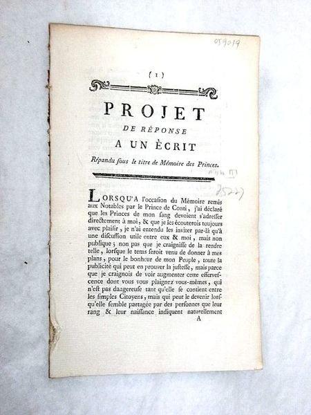 Projet de Réponse à un écrit répandu sous le titre de Mémoire des Princes.