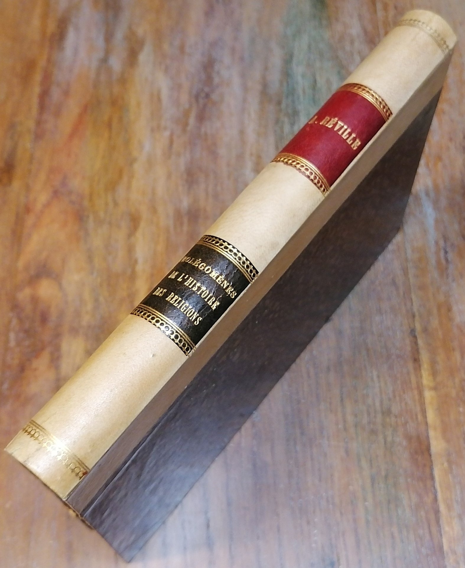 (Storia delle religioni; Classificazione delle religioni; Fenomenologia religiosa) In 8°, legatura coeva in mezza pergamena, al dorso doppio tassello rosso e nero con titoli e filetti in oro, guardie in carta decorata, pp. VII,(1),320,(4). Quarta edizione riveduta e corretta (I ed. 1881). Piccolo timbro di antica legatoria bolognese al recto del foglio di guardia posteriore. Volume solido e ben conservato con leggere tracce di ossidazione su poche pagine.