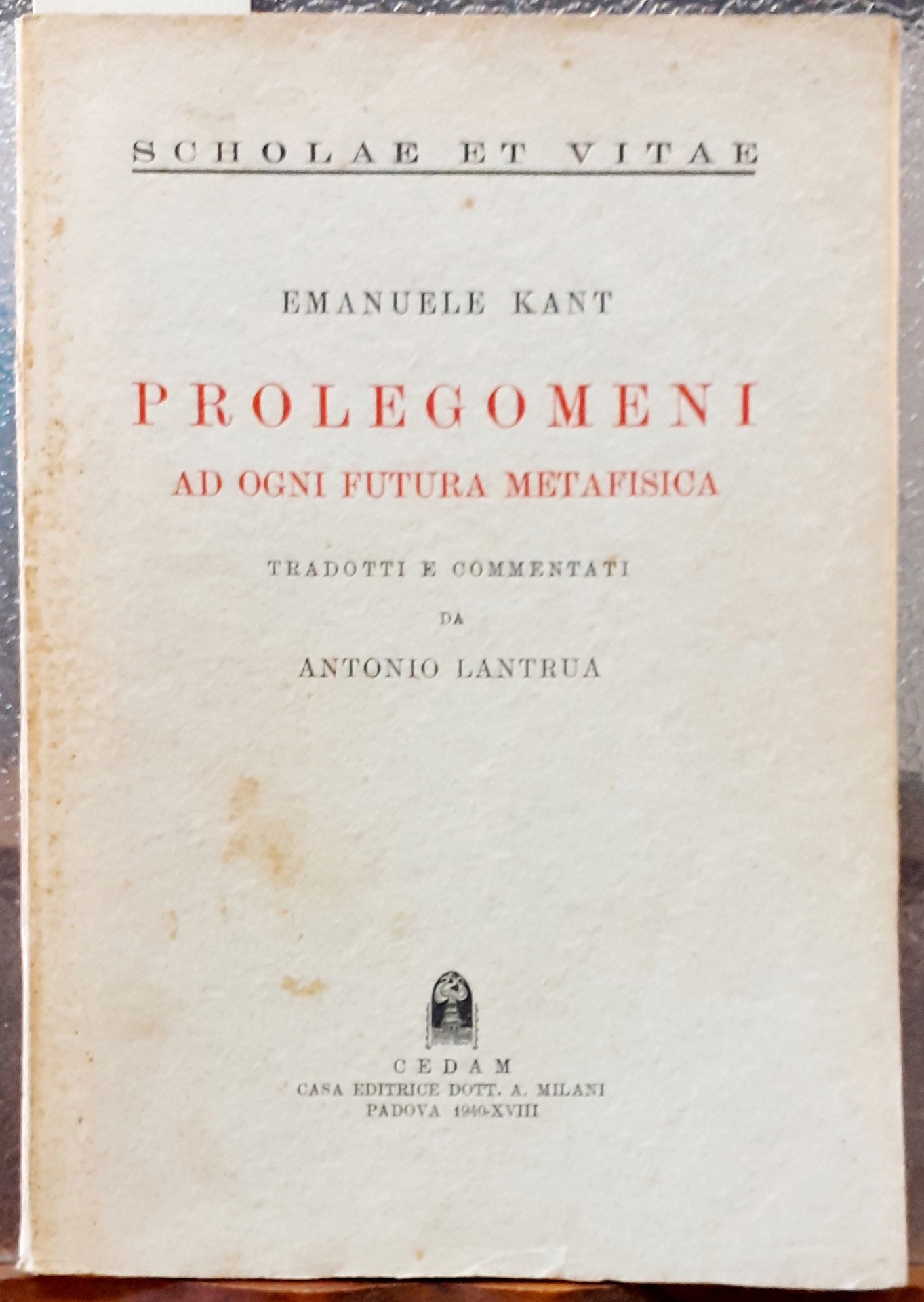 PROLEGOMENI AD OGNI FUTURA METAFISICA. Tradotti e commentati da Antonio Lantrua.