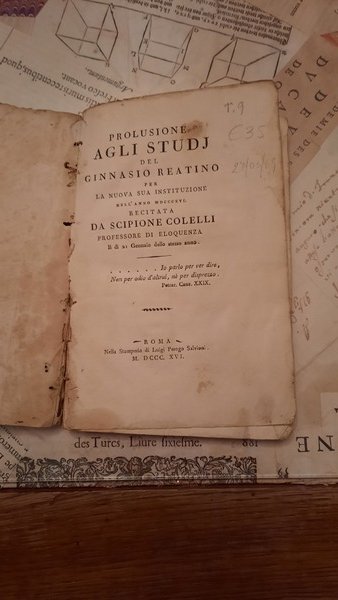 Prolusione agli studj del ginnasio reatino per la sua nuova istituzione nell'anno MDCCCXVI