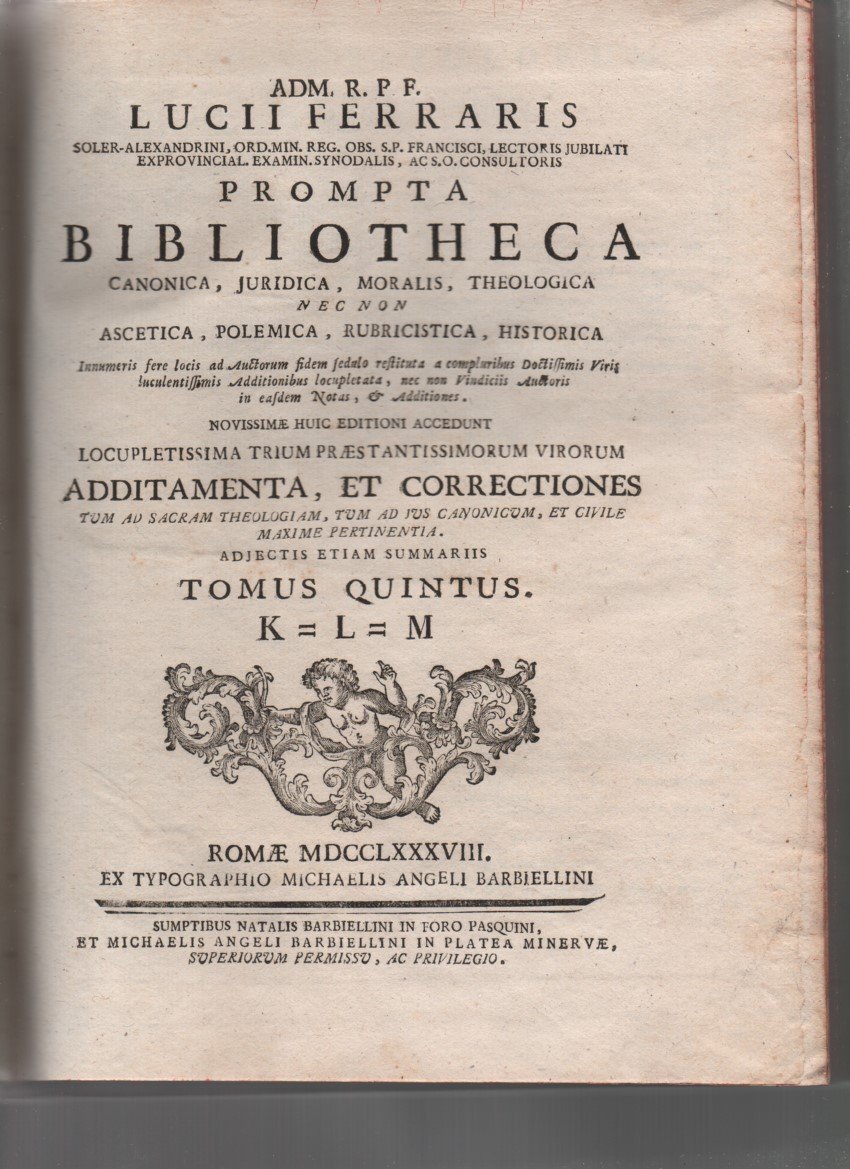Prompta Bibliotheca canonica, juridica, moralis, theologica nec non ascetica, polemica, rubricistica, historica (tomus quintus)