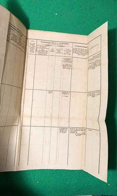 In 4°; (2), 128 pp. e 4 c. di tav. più volte ripiegate. Il nostro esemplare contiene anche 42 pagine bianche inframmezzate nel testo per eventuali appunti. Varie note coeve manoscritte al margine esterno in alcune pagine. Alcue pecette a stampa aggiunte nel testo. Brossura editoriale, il solo piatto anteriore, con titolo impresso in nero al entro cornice. Qualche mancnaza al dorso, esemplare un po' lento e per il resto in buone condizioni di conservazione. Prima ed unica rara edizione, un solo esemplare censito in ICCU, di questa guida per gli ufficiali dell'ufficiale del Regio Esercito della piazzaforte di Asti. Rif. Bibl.: IT\ICCU\LO1\1099382.