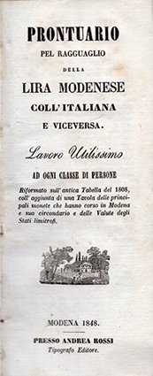 Prontuario per ragguaglio della lira modenese coll'italiana e viceversa