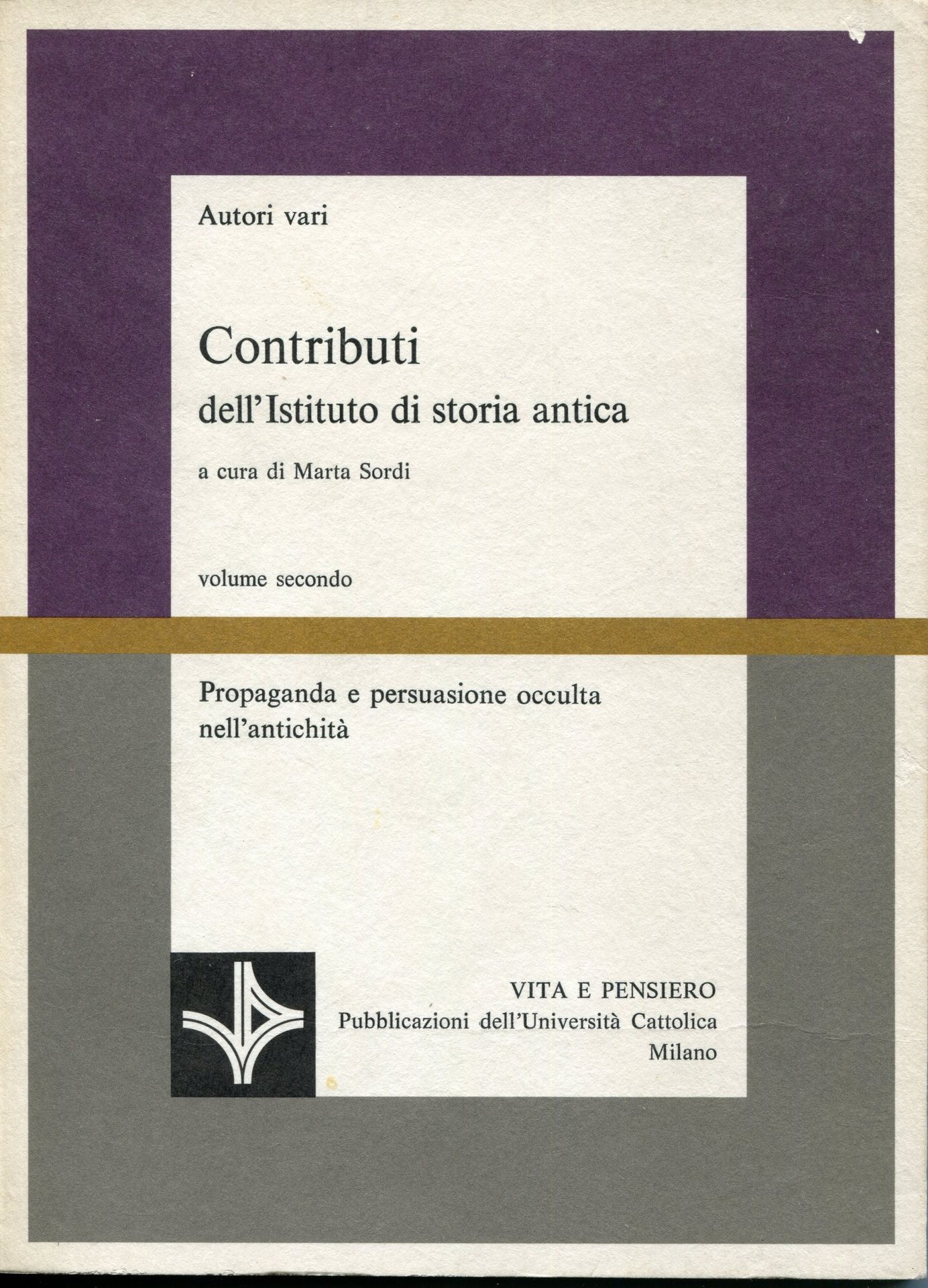 Propaganda e persuasione occulta nell'antichità. Volume 2 di " Contributi dell'Istituto di storia antica" a cura di Marta Sordi