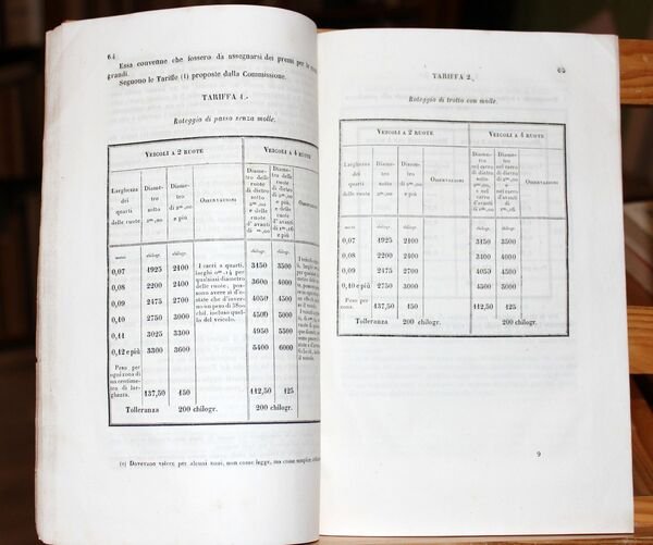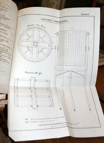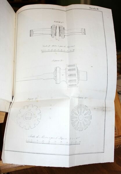 In 8°, pp. 82. Con tre tavole ripiegate alla fine del testo. Brossura muta rosa dell'epoca. Dorso foderato con carta marmorizzata.