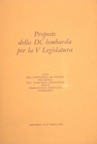 Proposte della DC lombarda per la V legislatura. Atti del convegno di studio promosso dal Comitato Regionale della Democrazia Cristiana lombarda. Cadenabbia, 14-15 ottobre 1967. Premessa di Piero Bassetti. Introduzione di Angelo Romano.