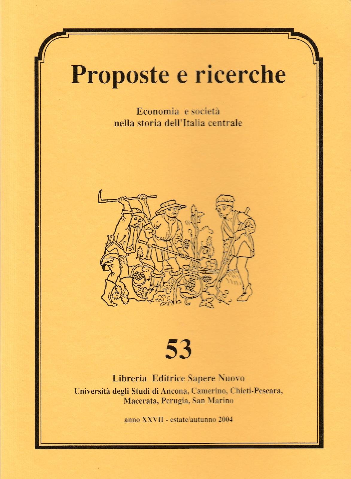 Proposte e ricerche Economia e societ‡ nella storia dell'Italia centrale n. 53 Libreria editrice sapere nuovo 2004