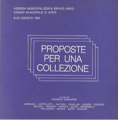 Proposte per una collezione: Andreani, Cappelletti, Cattani, Cavallini, Chierzi, Colorio, Decarli, Fedrizzi, Ferrari, Gelmi, Mazzonelli, Pellegrini; Savoia, Seppi, Winkler.