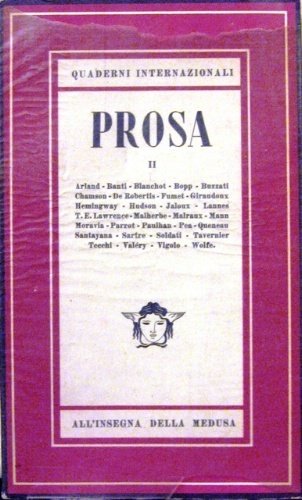 - "Collana "Quaderni internazionale" diretti da Enrico Falqui, n. 5. 1^ edizione. Tra gli autori antologizzati: Arland, banti, Blanchot, Bopp, Buzzati, Chamson, De Robertis, Fumet, Giraudoux, Hemingway, Hudson, Jaloux, Lannes, T.E. Lawrence, Malherbe,