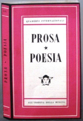 "Catalogo edit. fustellato a forma di libro di cm. 14 x 9,5: al recto riproduce la brossura edita per la serie dei "Quaderni internazionali", all'interno riporta il sommario del n. 2 di "Prosa" e del numero doppio 3-4 di "Poesia", al verso blurb e spazio per i dati del mittente. Lievi ingialliture."