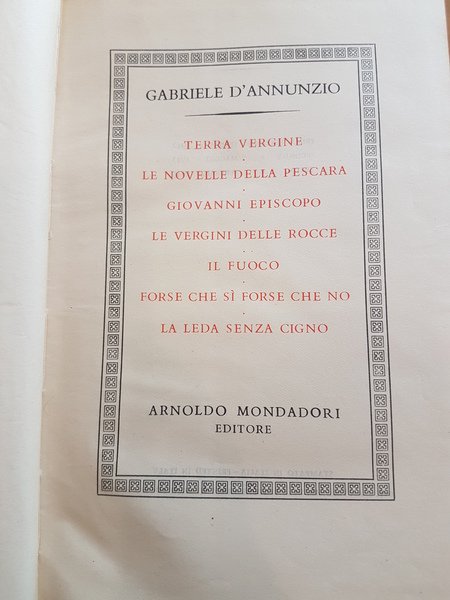 Terra vergine,le novelle della Pescara, Giovanni Episcopo, Le vergini delle rocce, Il fuoco, Forse che si forse che no, La cena senza cigno