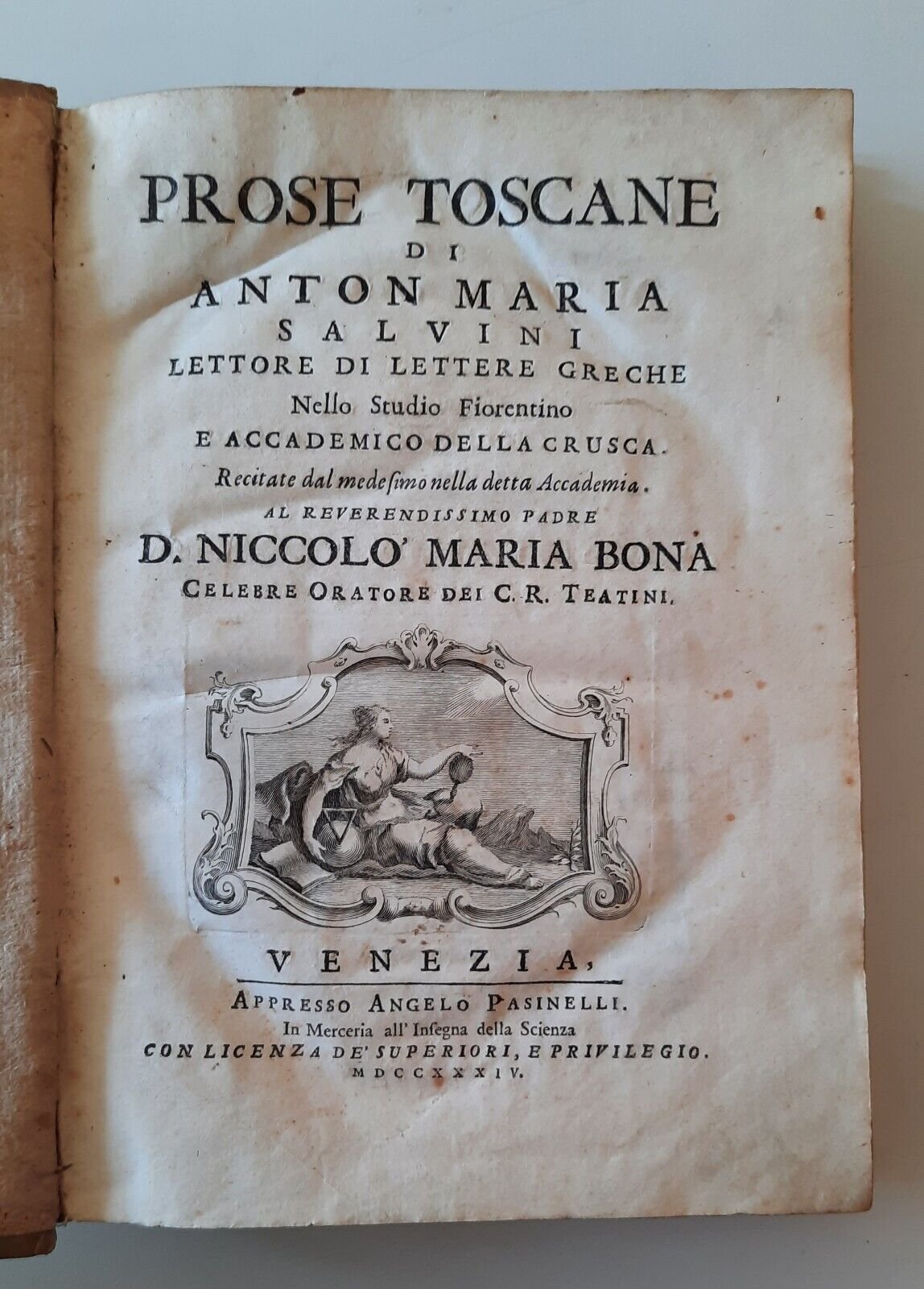 PROSE TOSCANE DI ANTON MARIA SALVINI VENEZIA APPRESSO A. PASINELLI 1734