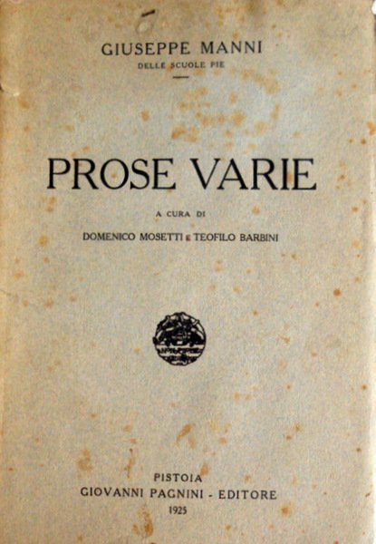 Titolo: Giuseppe Manni delle Scuole Pie: Prose varie