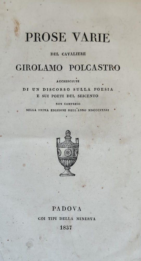 PROSE VARIE DEL CAVALIERE GIROLAMO POLCASTRO ACCRESCIUTE DI UN DISCORSO SULLA POESIA E SUI POETI DEL SEICENTO NON COMPRESO NELLA PRIMA EDIZIONE DELL'ANNO MDCCCXXXII