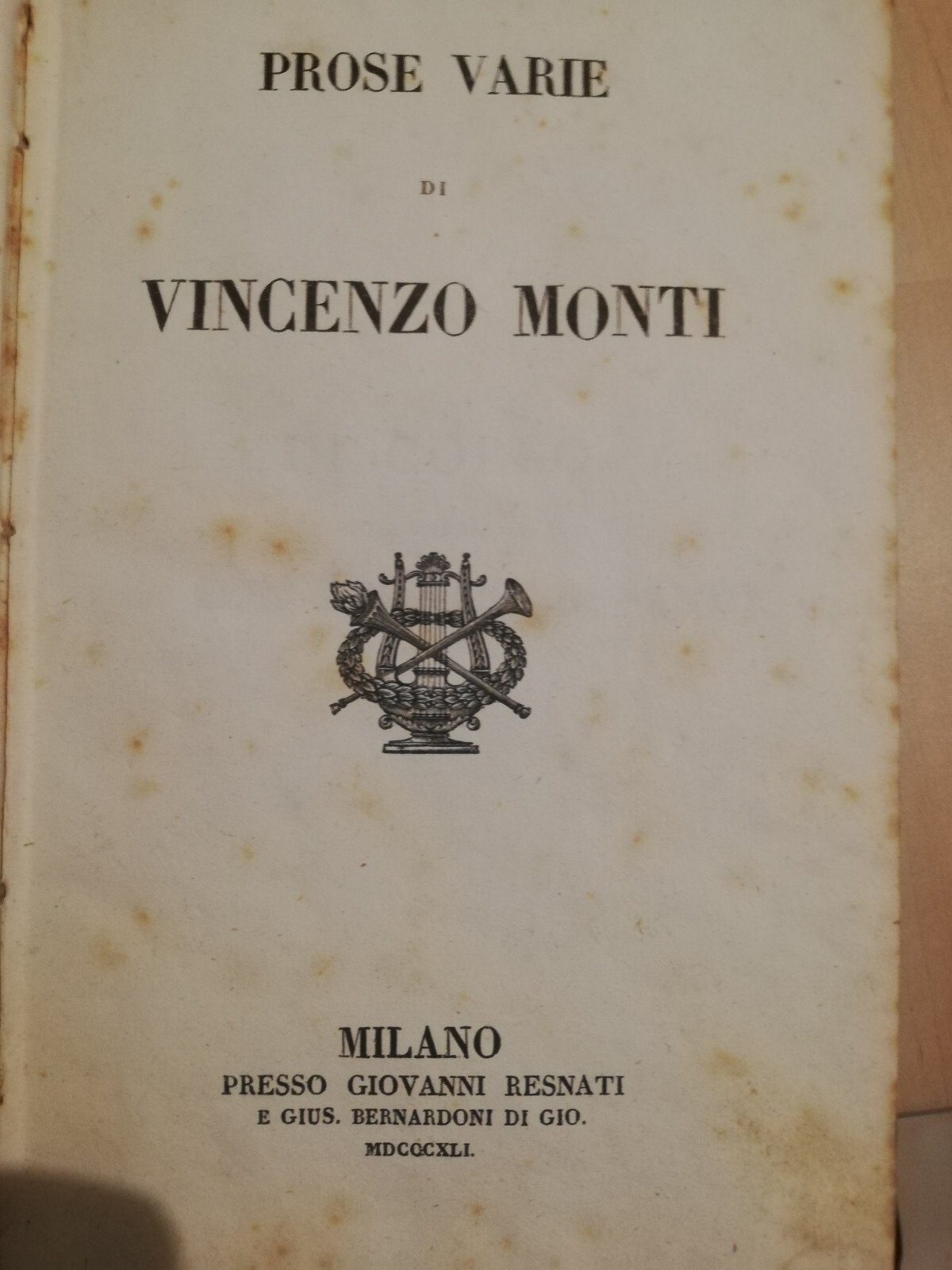 Prose varie, Vincenzo Monti, 1841, Giovanni Resnati, Per collezionisti