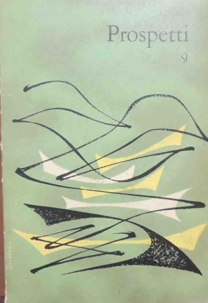 Prospetti. Nono numero, autunno 1954, G. C. Sansoni, Firenze 1954, pp. 192, 14 c. di tavv. f.t. ill. b.n. e col., cm 23, br. ed. Indice: Carl Carmer, La danza tenebrosa – John I. H. Baur, Il luminismo americano – F. W. Dupee, Lettera da New York – James S. Plaut, Il disegno industriale negli Stati Uniti – Mark DeWolfe Howe, Fede e scetticismo nelle leggi costituzionali americane – William Faulkner, Appunti sopra un ladro di cavalli – Archibald MacLeish, Quattro poesie – Frederick Lewis Allen, La grande trasformazione dei sobborghi – L’artista creatore e il pubblico (Saul Bellow, Corrado Alvaro, Robinson Jeffers, Salvatore Quasimodo, Robert Motherwell, Felice Casorati, Roger Sessions, Luigi Dallapiccola – Recensioni (Charles J. Rolo su Jacques Barzum: God’s Country and Mine – Frederick Osborn su Harrison Brown: The Challenge of Man’s Future) – Elenco di libri nuovi – Dalla stampa periodica americana – Libri dall’America e sull’America – I nostri collaboratori – Note redazionali – I tagliandi Unesco. Leggere tracce d’uso, minime fioriture, uniforme brunitura della carta, per il resto esemplare ben conservato.