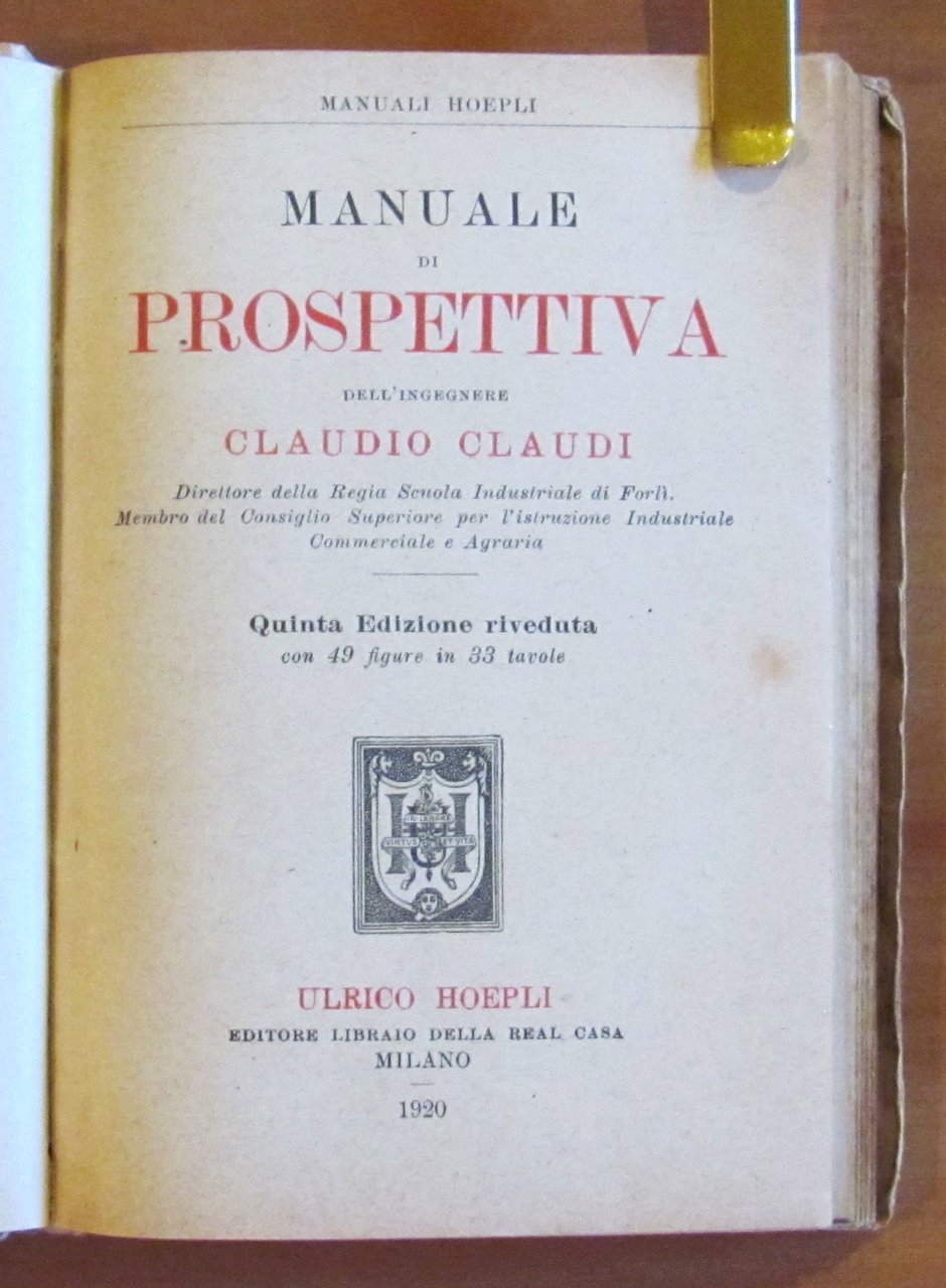 33 tavole a doppia pagina f.t. Editore Ulrico Hoepli - Milano, 1920 - V edizione riveduta. Brossura editoriale con brunitura del tempo e piccole fioriture alle copertine. Timbro e firma di vecchia appartenenza in antiporta. Peraltro freschissimo. 10,5x15; pp.76 + le tavole. Raro e in Buonissimo stato. , Molto buono (Very Good)